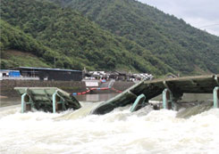 活動壩面放倒后只高出基礎20厘米達到無壩一樣的抗洪效果
